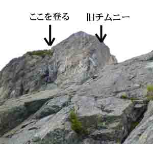 枯れ木テラスからdガリー奥壁城砦チムニー(V級)までの間の10m×10m×10m位のブロックが落ちてしまい、 V級レベルで抜けることが出来なくなっています。 かつての城砦チムニー(V級)の5m位左側に浅いチムニーがあり、そこを登ります。 8mくらいの間にハーケンが4本位あるので、最悪人工でも登れそうです。 傾斜が強いので、だいぶ力が必要かも知れません。 (W+位あるかな?) 【山下】 |