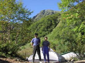 ながら2時間の登り、8:10白根御池小屋の幕場に到着。テントを設営し、登攀具以外の荷物をテント