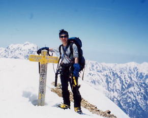 1ピッチですみ、再び雪壁を登る。ぐしゃぐしゃな雪質状態ゆえ、滑落に十分注意して登る。山頂までのラストスパートは、