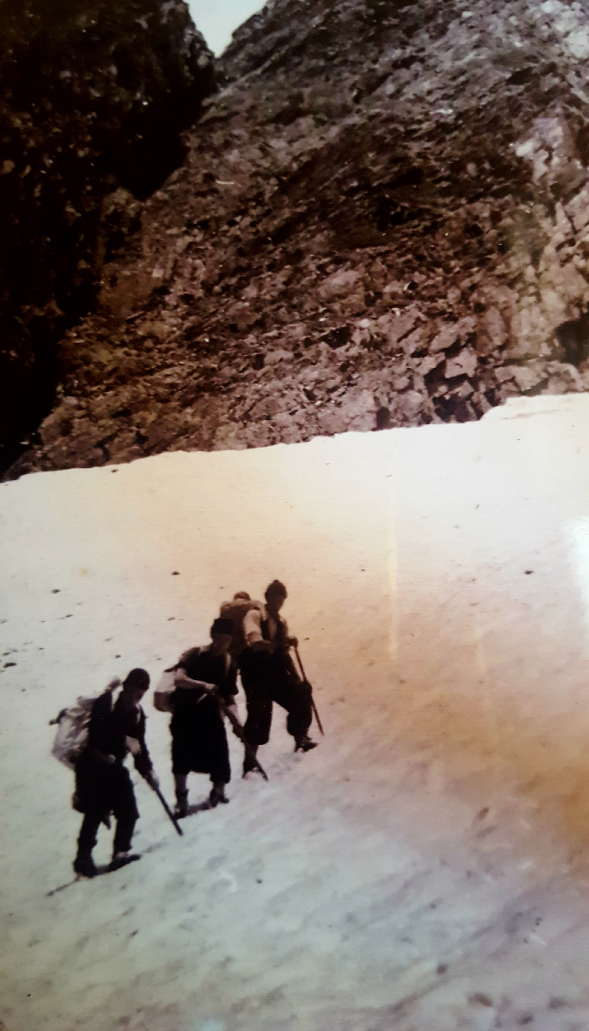 2019/12/7 中川三男 遠藤孝次さま(巻山さま) お礼が遅れました。 若い時の写真が掲載され、お恥ずかしい次第です。何のとき撮られたの全く覚えておりません。 穂高の写真は、昭和27年(1952)夏で、確かに玉石、遠藤、中川で、撮影者は中尾さんと思います。 幕営していた奥穂の稜線から、ジャンダルムを越えて、天狗のコルに行くコースはかなりきつかった 記憶があります。 ともかくこの時代と人たちを懐かしく思い出します。元気でお過ごし下さい。 中川三男 |