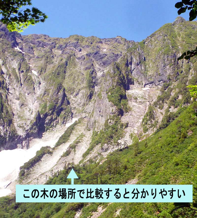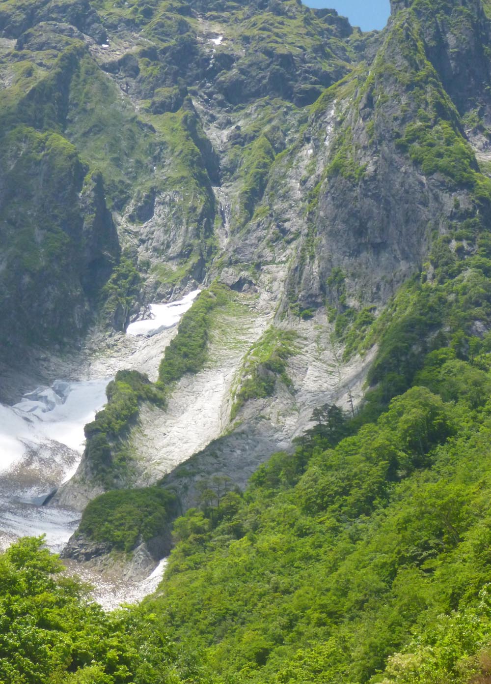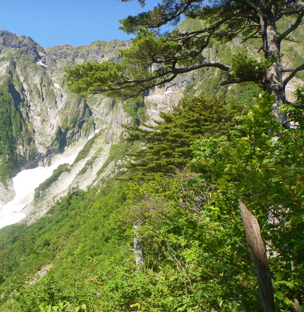 2015/06/29 山下眞一(Web管理者) 一ノ倉尾根レリーフ捜索[第三次捜索] 6月26ヤ〜28日に神奈川岳連の沢登り教室番外編で上州武尊山川場谷が使えるかどうかの偵察に行きました。 そのついでに野中さん・服部さんのプレートを確認するために一ノ倉尾根に行ってきました。 ![]() レリーフの位置はヤブが切れて烏帽子岩や衝立岩がよく見え、踏み跡がほとんど水平になった所です。 写真@の枯れ木の根本で、踏み跡から一ノ倉沢側に一段降りた岩についています。 尾根上のヤブは刈り払いをしましたが、ヤブが濃くなると通りがかりでは見つけにくそうです。 岩に残っていた接着剤から見て、野中さん・服部さんのプレートは一番上に付いていたみたいですね。 外れてからかなりたつらしく、地衣類やコケが付いていました。 30メートルほど懸垂して降りましたが根曲がり竹の急斜面で金属探知機でもないと見つかりませんね。 場所が場所だけに、雪庇の崩壊に持って行かれたかも知れません。 浅いルンゼになっているので、落ちて到達するのは一ノ倉出合いです。 懸垂途中に上坂が供えたワンカップが落ちていたのでプレートにかけてカップは回収して来ました。 途中の踏み跡の途切れたヤブはノコで切り開いて赤テープを付けてあるので、下山時に迷いにくくなりました。 |