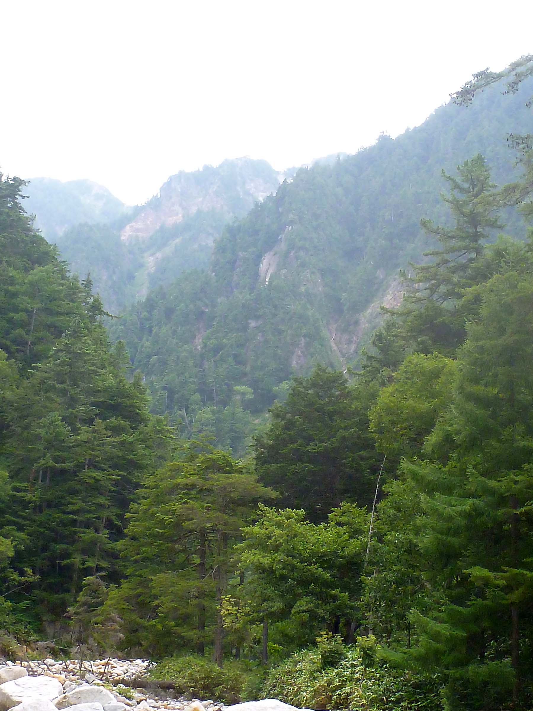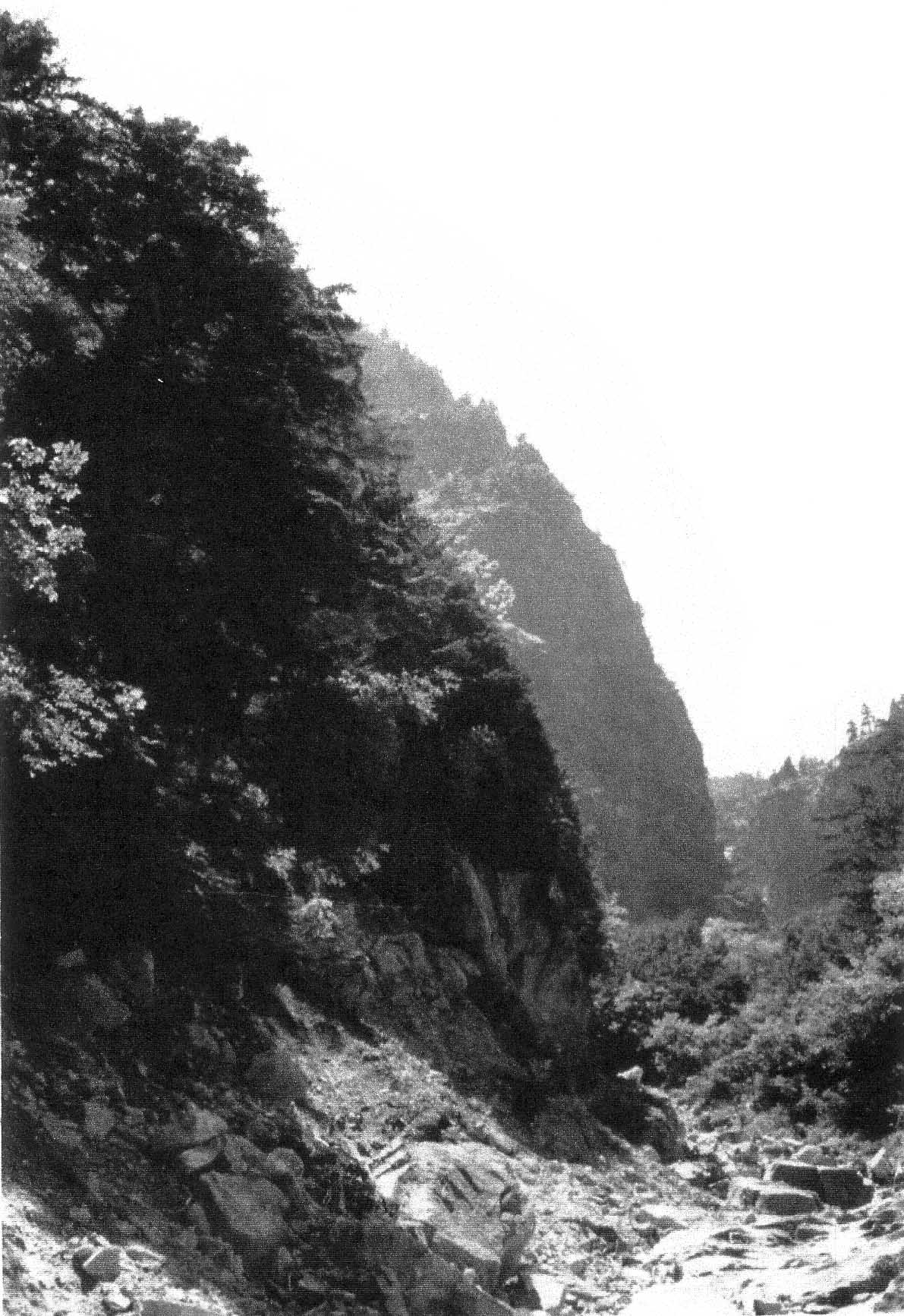 どうも位置が写真と合わないのでさらに降りてみましたが、そうすると衝立岩が見えなくなってしまします。 結局、出合いまで戻ってきてしまいました。そこで写真を出して現場合わせをしてみると…。 どうやらこの写真は出合いで撮られた写真の様です。