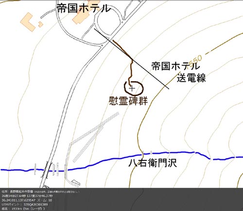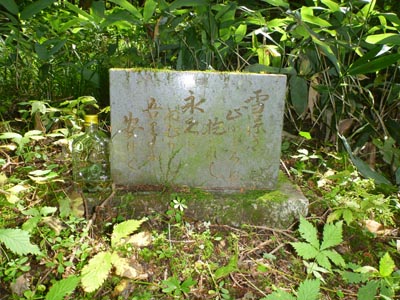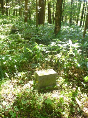 慰霊碑の位置は N 36°14' 27.64" E137°37' 46.37" です。 この慰霊碑は山田邦彦氏の御尊父が建立した物で、蝸牛山岳会としてはこの奥明神沢の事故でレリーフを設置したりはしていないとの事です。 そのため、山田氏と共に遭難した瀬戸芳夫氏については慰霊碑は無い模様です。我々もこの慰霊碑群を探し歩きましたがありませんでした。 |