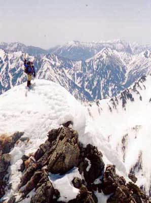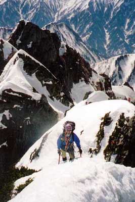 | Z[間のコルはナイフリッジ になっていました。午後になり 雪が腐りヒヤヒヤものです。 |