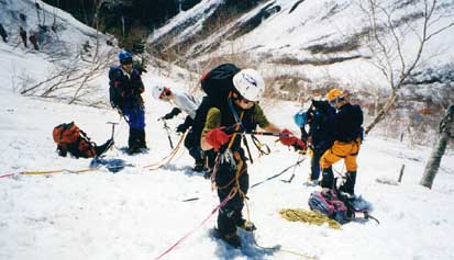 | 入山初日は富士山雪訓をしていない新人が 多かったので岳沢にて雪山講習会でした。 |