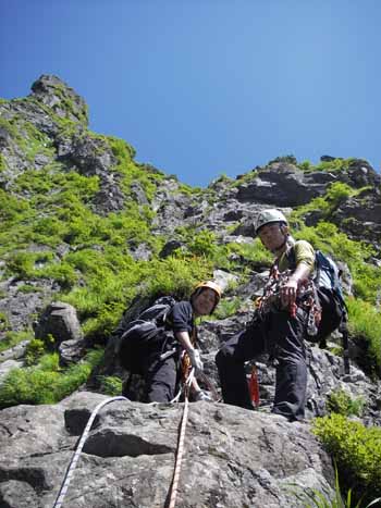 南稜の最終ピッチは楽しい所です。ランニ ングをしっかり取って「エィッ!ヤァッ!」 |
