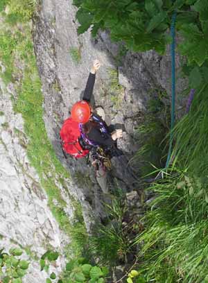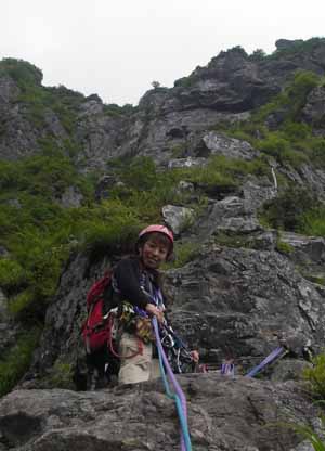 6ピッチ目のフォローをすると、うれしそうにビレーしていました。ほんとに岩場が好きみたいです。 |