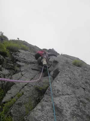 6ピッチ目のピナクルから登る中央稜らしいフェースをリードします。 |