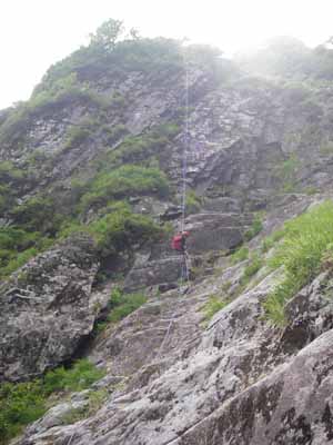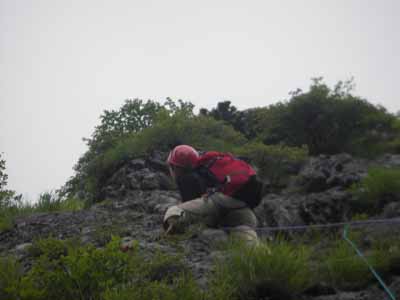 最後は北稜を懸垂下降してきます。 この時は自分が降りるだけだったので特に問題は無かったのですが…。 この後の錫杖以来、懸垂下降はトラウマになっています。 |
