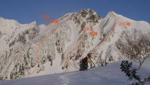 | 今回のバリエーション組は3ルートに分かれて登ります。 |