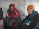 | 西遠見ではエスパースの4・5人用が中に入るサイズの雪洞を2つ掘って快適な雪洞テント泊です。 |